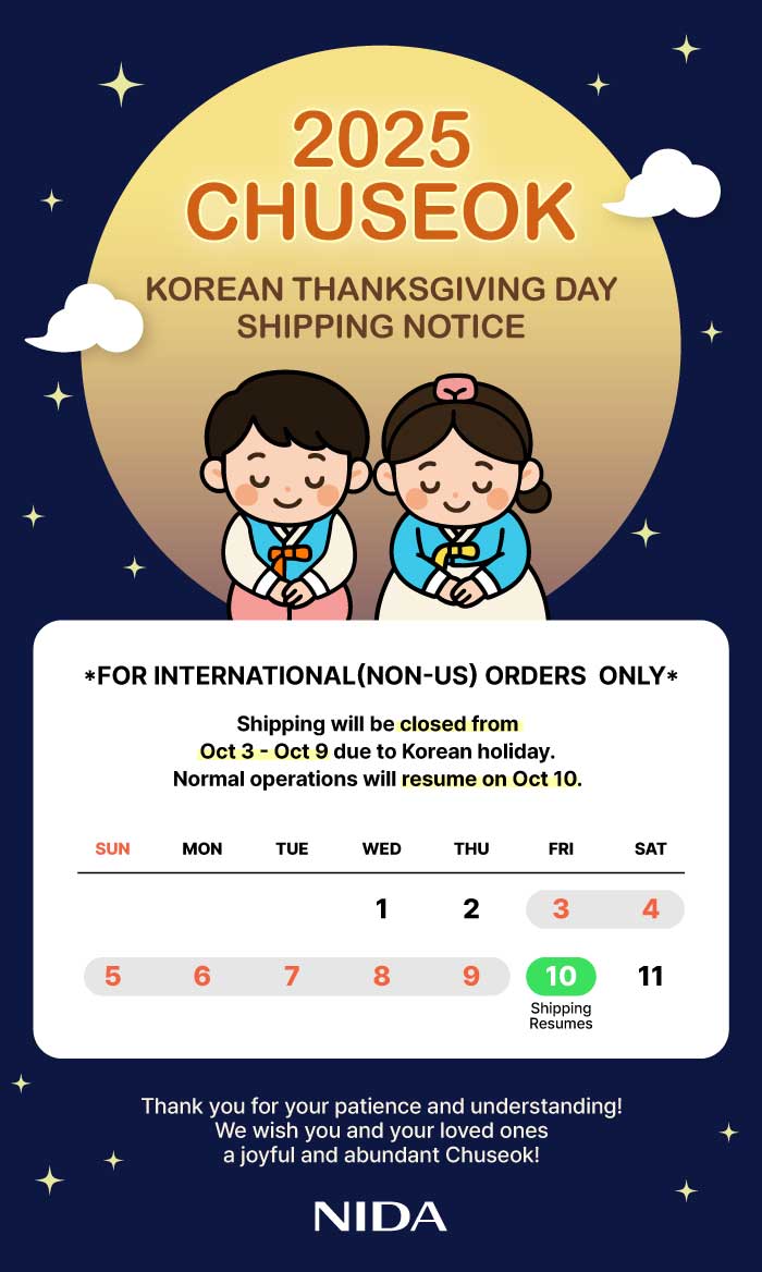 For more details, please check our Shipping Info page or contact us at cs@nida.co
