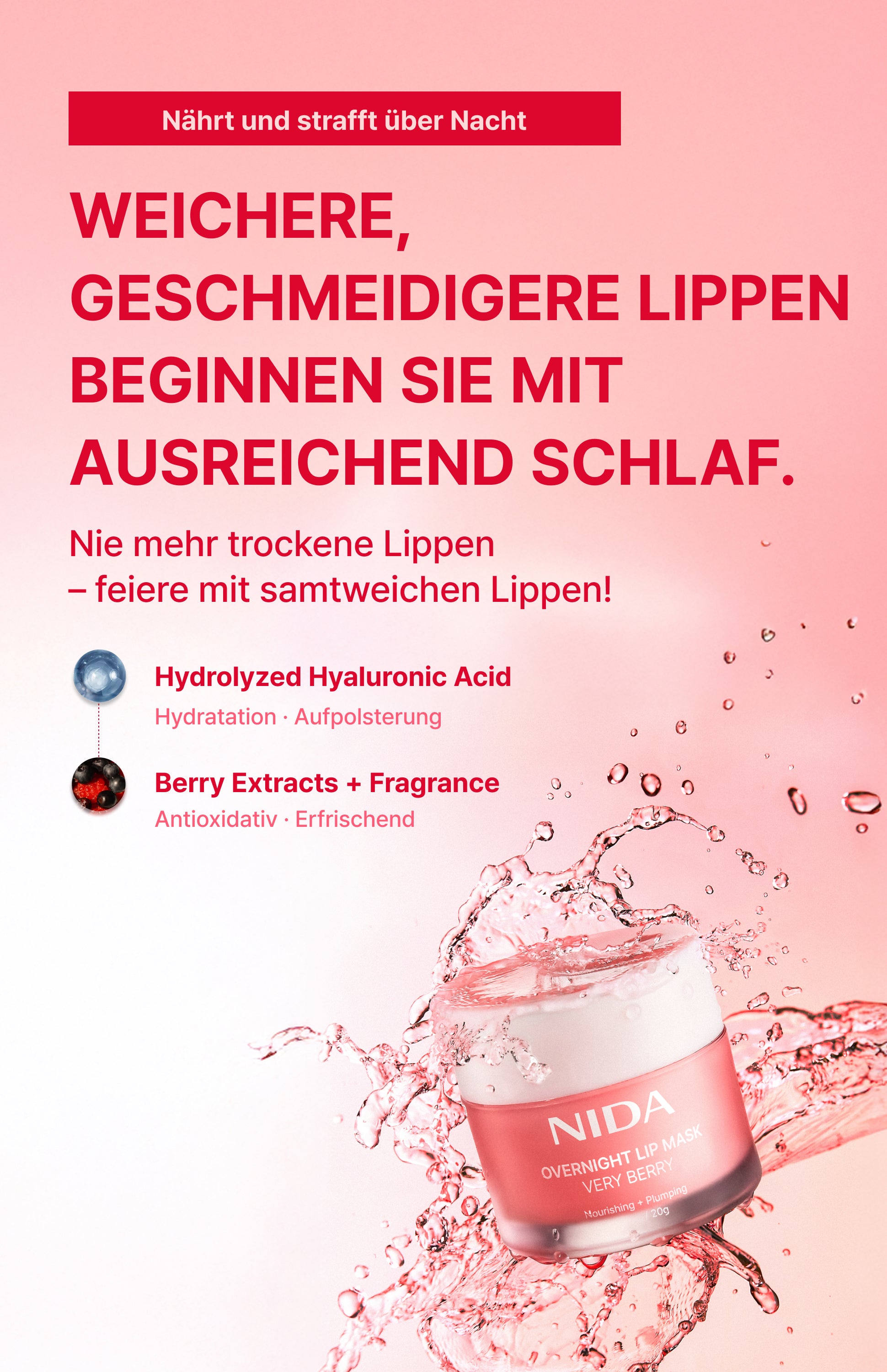 Wirkt über Nacht, um bis zum Morgen weiche und geschmeidige Lippen wiederherzustellen und zu erhalten.