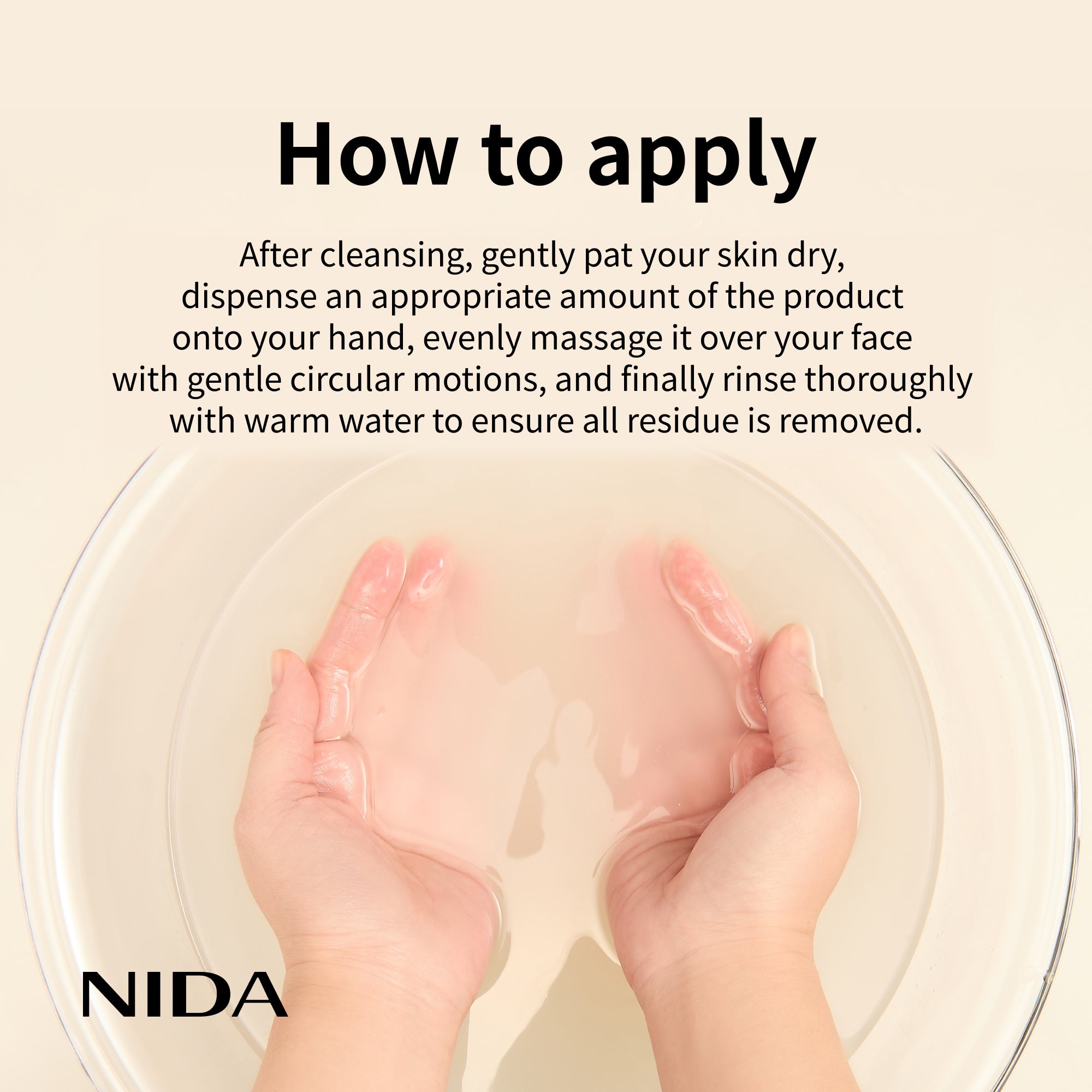 After cleansing, gently pat your skin dry, dispense an appropriate amount of the product onto your hand, evenly massage it over your face with gentle circular motions, and finally rinse thoroughly with warm water to ensure all residue is removed.