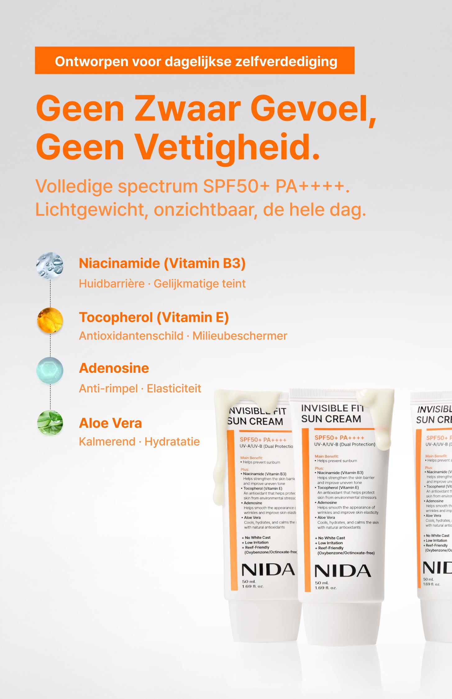 Biedt antioxidantbescherming en hydratatie met vitamine E en aloë vera.