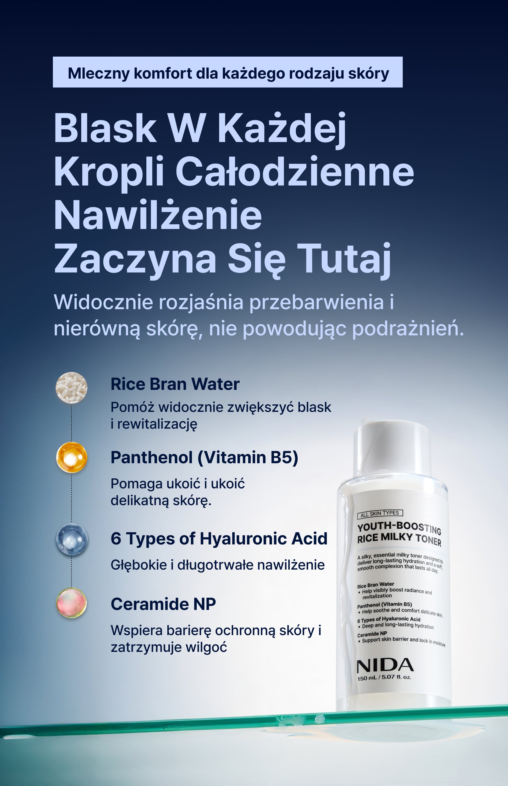 Zapewnia długotrwałe nawilżenie nawet do 24 godzin, dzięki czemu skóra wygląda na jędrną i promienną.